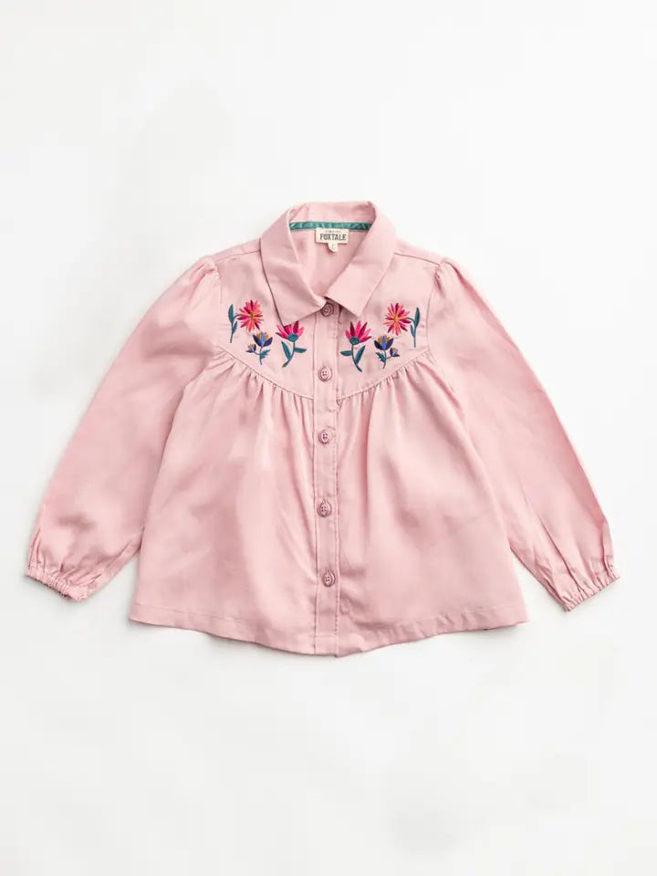 The smooth Tencel fabric is grounded in a soft pink shade, topped with twinkling buttons, and finished with a brilliantly bold embroidered bouquet on the bodice. This thoughtful style has a lined yoke, so you get all the darling details without discomfort.