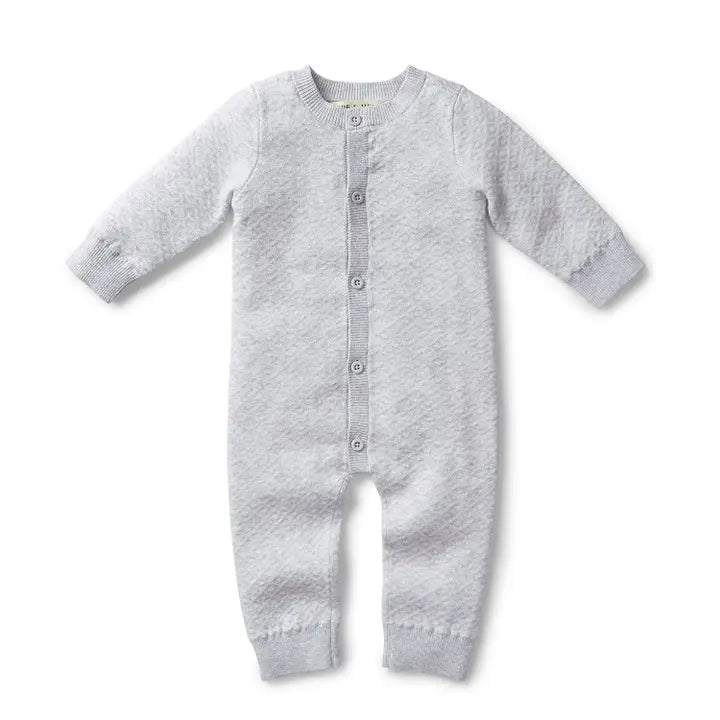 * 100% Organic Cotton, exclusive of trims. * Button closure down center front for ease of dressing baby. * Not intended for sleepwear. * Machine washable.