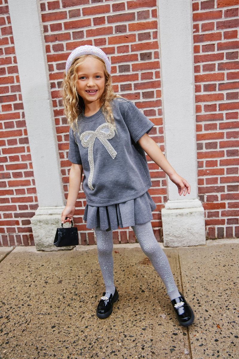 - Adorable short set featuring a sparkling bow design embellished with rhinestones for a touch of charm and elegance.